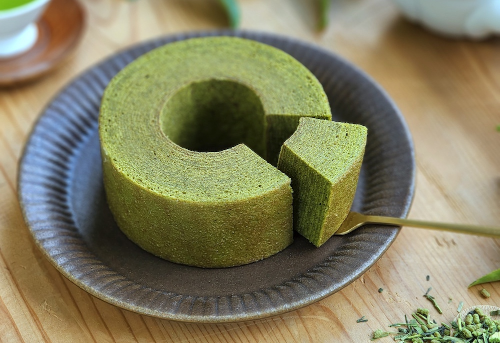 京都府内産の玉露を使用したバームクーヘンは米粉を生地に加え、職人が丁寧に焼き上げた和心そそる逸品です。