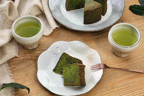 期間限定の新茶時期だけしか味わえない新茶を使用したバターケーキは