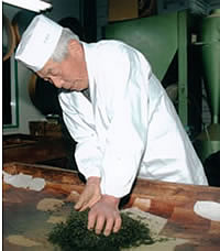 粗柔機(そじゅうき)・精柔機(せいじゅうき)などの工程で、その機械を人間の手でするかのように改良し、そのひとつひとつの工程の中で、手揉みをを加え、自らが茶葉の出来具合を確認し仕上げていきます。