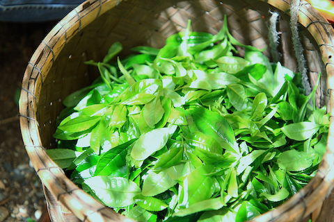 約20日間覆いをされた茶園は手やハサミによって摘まれます。