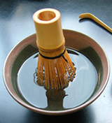 茶せんは、竹製品のため、少し温めた方がよくしなり点てやすい。しなりが悪いと、竹が折れやすくなるので、注意が必要です。
