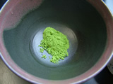 抹茶碗と、茶せんを温めるために使ったお湯を捨てます。その抹茶碗に抹茶をいれる。茶しゃくでおおよそ2杯、2g程度。 抹茶の量は、もちろんお好みで・・・