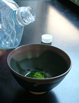 その場合、お湯を入れて点ててしまうと、カタマリが残ることが多いので、少量の水を入れ、茶せんで、練ります。