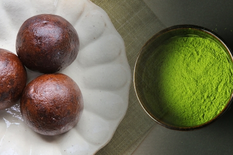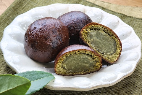 香ばしい黒糖生地とこし餡に玉露パウダーをたっぷりと練り込み、米油でカラッと揚げました。
