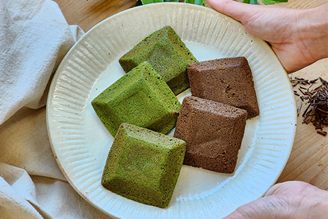 原材料の小麦を米粉に置き換え、茶葉と米粉のバランスを追求し、しっとりと濃厚で香り高く仕上がるように一枚一枚丁寧に焼き上げています。