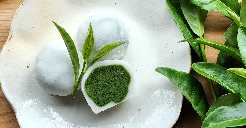 舞妓の茶本舗の大福の中身はもちろんこだわりの京田辺産の玉露を練り込んだ餡が入っております。5月の初旬に手摘みされた高級玉露を製造するときに出てくる旨味たっぷりの玉露粉を餡に練りやすいように粉砕加工して使用しており、玉露の旨みをそのままにお召し上がりいただけます。