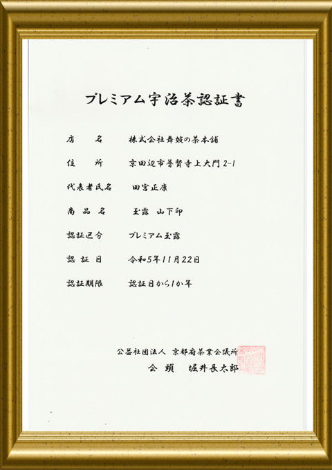 プレミアム玉露とは…茶業会議所さんがお茶の品質審査を行い、品質の良いお茶として認定されるものです。