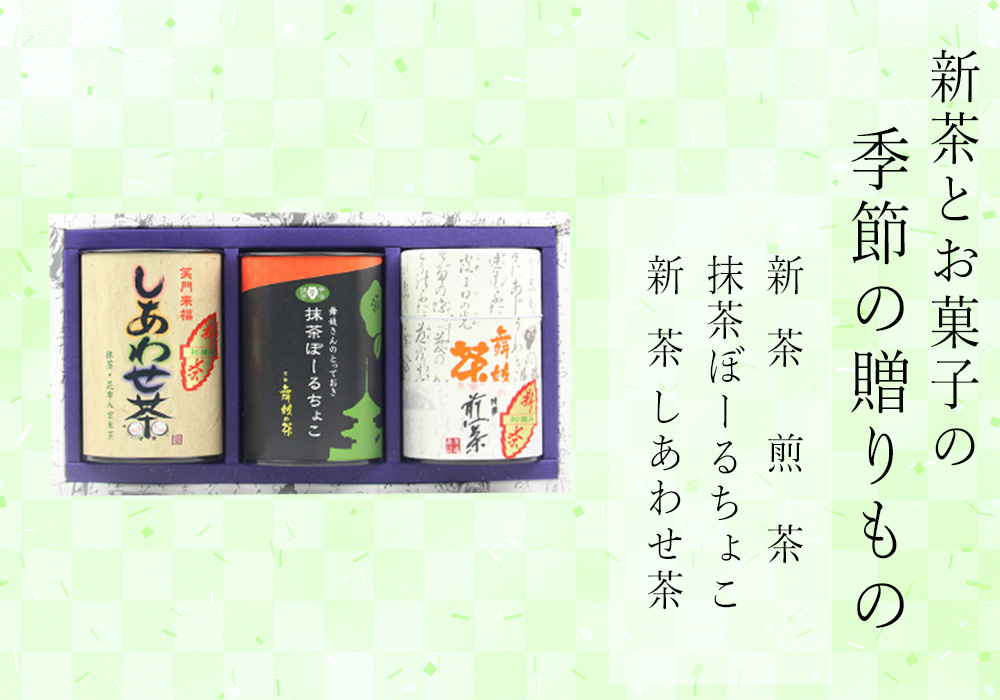 | 内容量 | ・新茶煎茶 110g ・抹茶ぼーるちょこ 80g ・新茶しあわせ茶 80g |