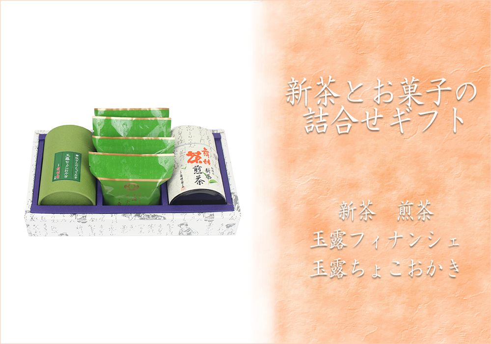 | 内容量 | ・新茶煎茶 110g ・玉露ちょこおかき 6個入 ・玉露フィナンシェ 4個入 |