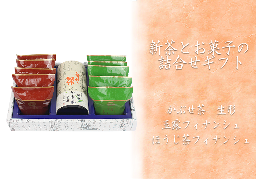 | 内容量 | ・新茶かぶせ茶生形 170g ・玉露フィナンシェ 5個 ・ほうじ茶フィナンシェ 5個 |