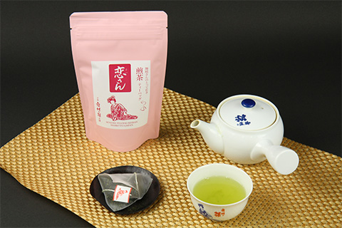 煎茶ティーバッグ恋さんは、ほのかな渋みとさっぱりとした香りで気軽にお飲みいただけます。
