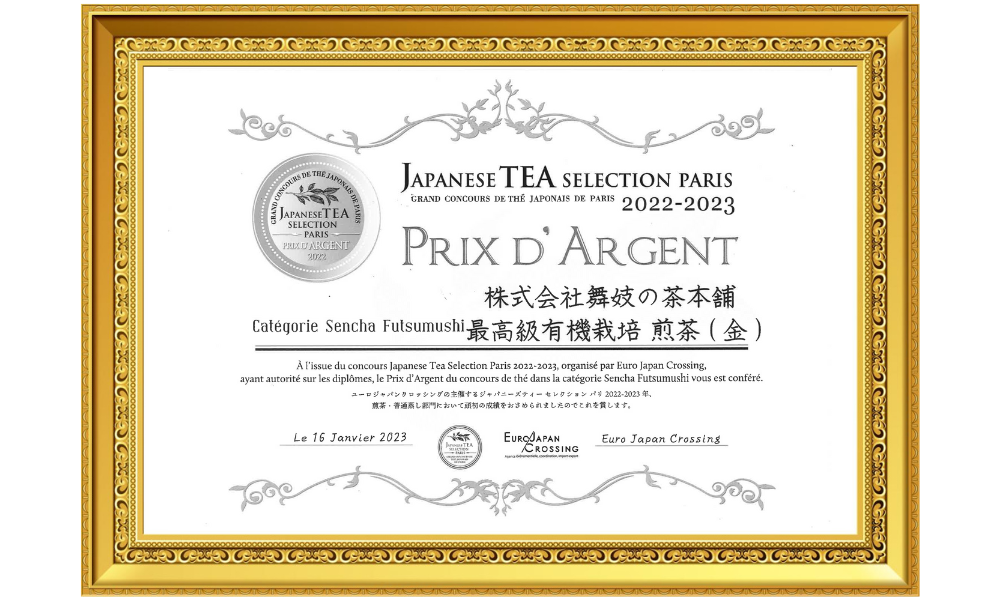 2022年度フランスパリで行われた、JAPANESE TEA SELECTIONにて「京田辺玉露」「有機手摘み煎茶金印」「玉露 匠」が賞を受賞致しました。