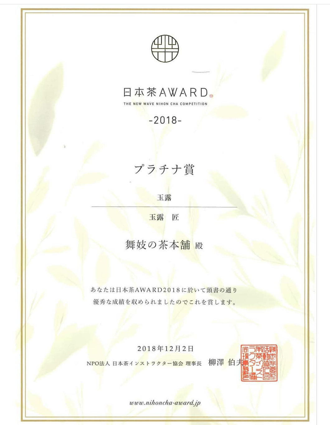 Japanese Tea Selection 2020 玉露部門 グランプリ受賞