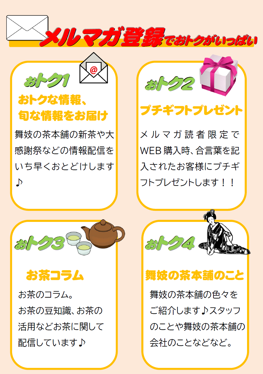 舞妓の茶本舗のメールマガジンの4つの特典