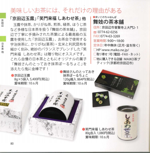 2014年観光庁監修の究極のお土産で舞妓の茶本舗の京田辺玉露が掲載されました。