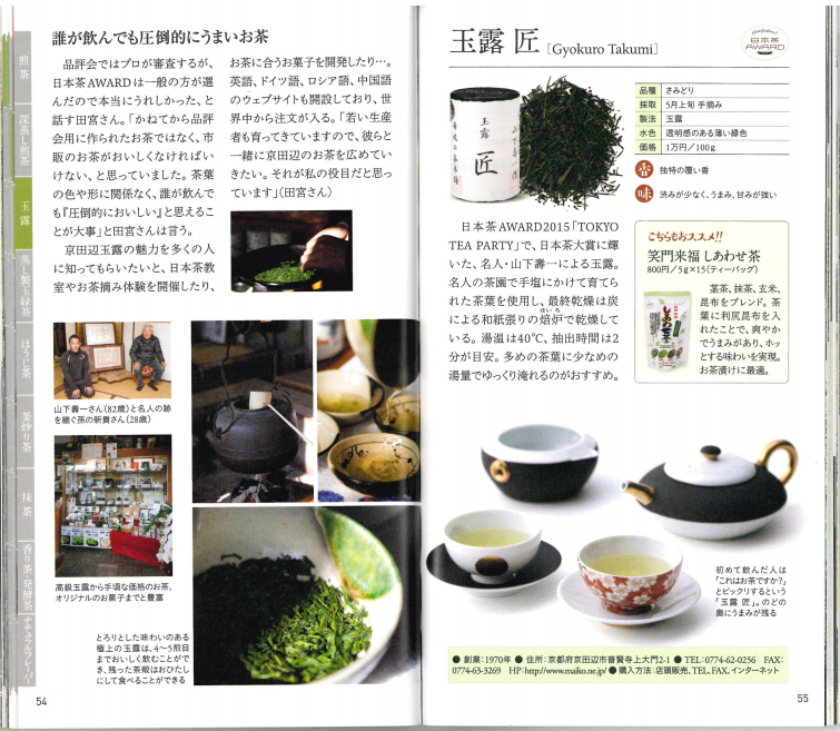 日本茶アワード2015に日本茶大賞に選ばれた舞妓の茶本舗の玉露「匠」の記事が掲載されました。