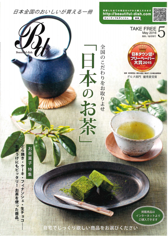 2016年5月号日本のお茶という見出しで「抹茶ぼーるちょこ」「生ちょこ」「抹茶フィナンシェ、煎茶京の露」「抹茶ミルクジャム」が掲載されました!
