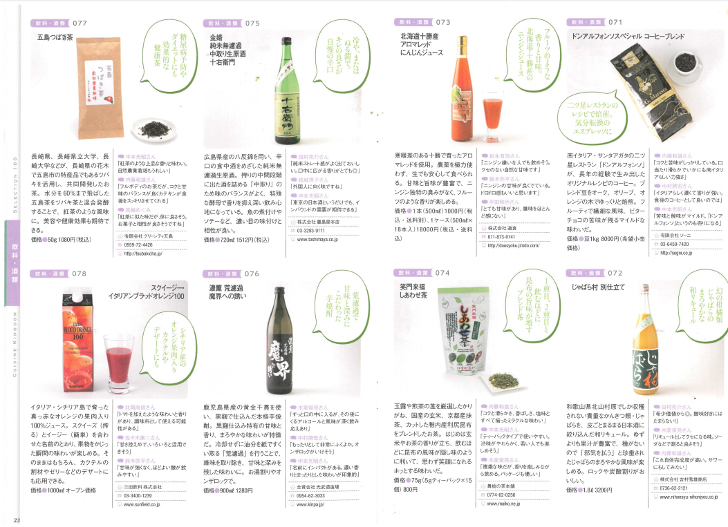 2016年1月6日発行の料理王国100選という雑誌に舞妓の茶本舗の「しあわせ茶」が記載されました!!