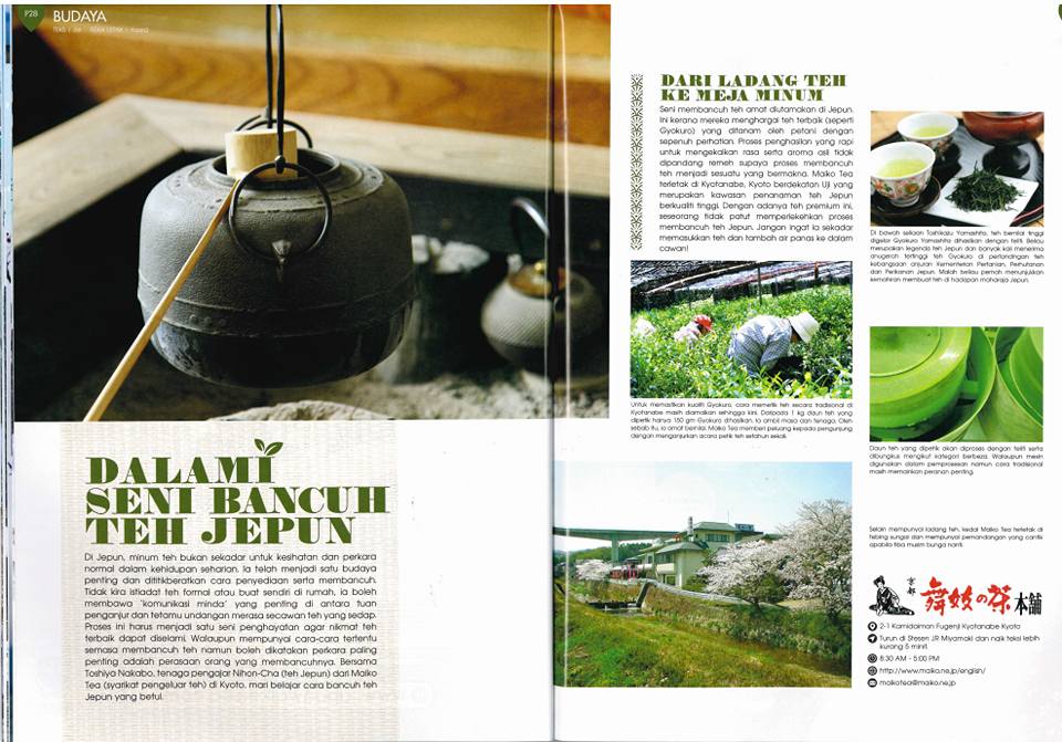 2014年、中国の雑誌に京都山城宇治の特集がくまれ、舞妓の茶本舗の「しあわせ茶」、煎茶「京の露」、「抹茶ぼーるちょこ」、「抹茶ミルクジャム」、「玉露あめ」が掲載されました。