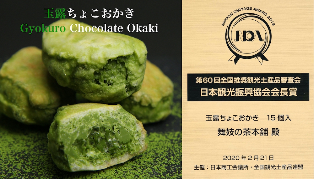 第60回全国推奨観光土産品審査会(NIPPON OMIYAGE AWARD)にて「玉露ちょこおかき」が日本観光振興協会会長賞を受賞しました!