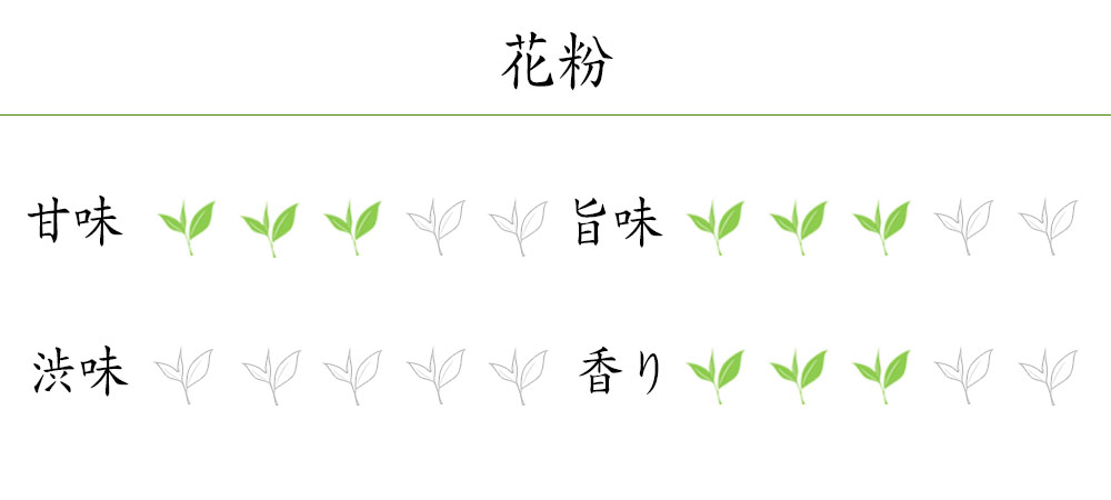 舞妓の茶本舗の粉茶は京田辺産の高級玉露の製造過程で出た「花粉」と玉露、煎茶の製造過程で出た「玉露粉」「煎茶粉」を取り扱っております。