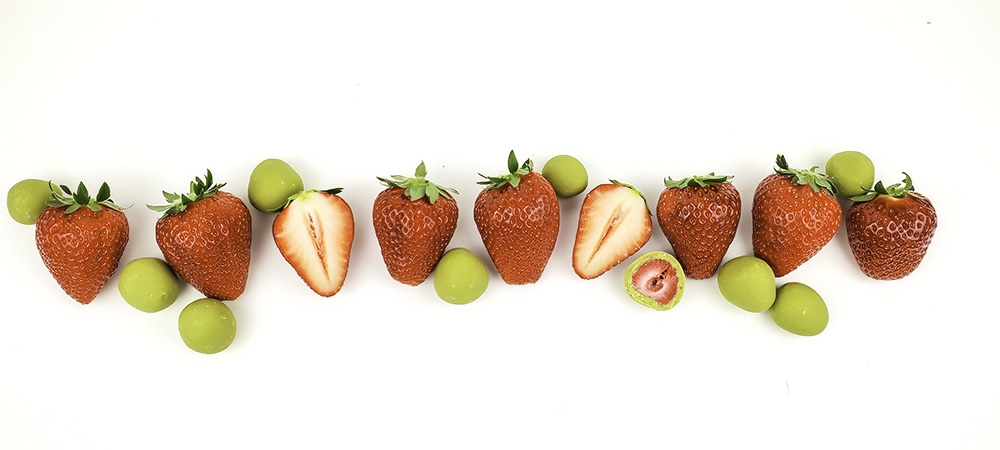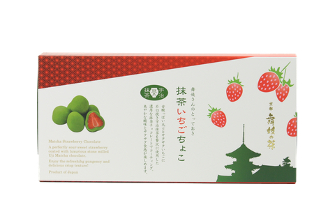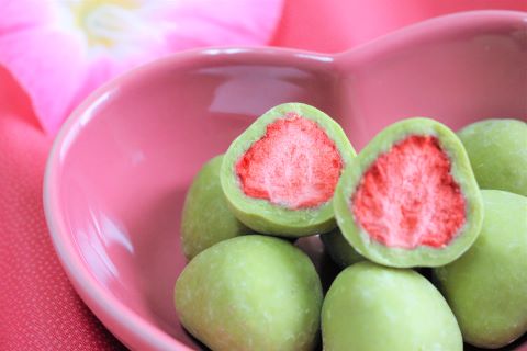 甘酸っぱい丸ごとフリーズドライのいちごに、石臼挽き宇治抹茶を贅沢に使用した濃厚な抹茶チョコレートでコーティング。