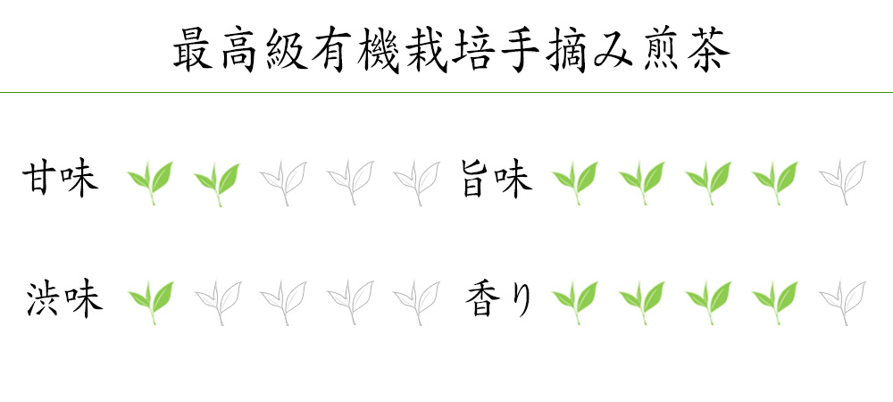 有機栽培茶のような有機農産物は3年以上、化学的に合成された農薬や肥料、土壌改良資材を使用しない栽培方法で栽培されたものです。また、隣の茶畑や農産物の畑からの農薬の飛散がないよう、何もない場所や各畑から一定の距離を取った場所で生産されております。